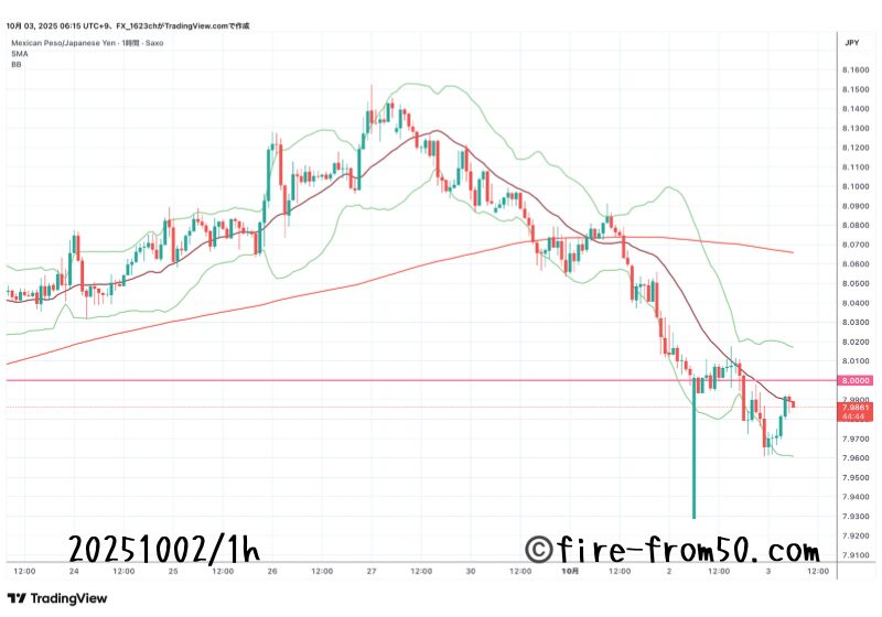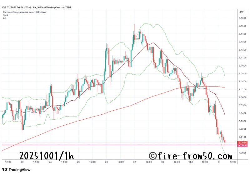 週明けから下げ続けてきたが、辛うじて8.000ラインで下げ止まったと言える。