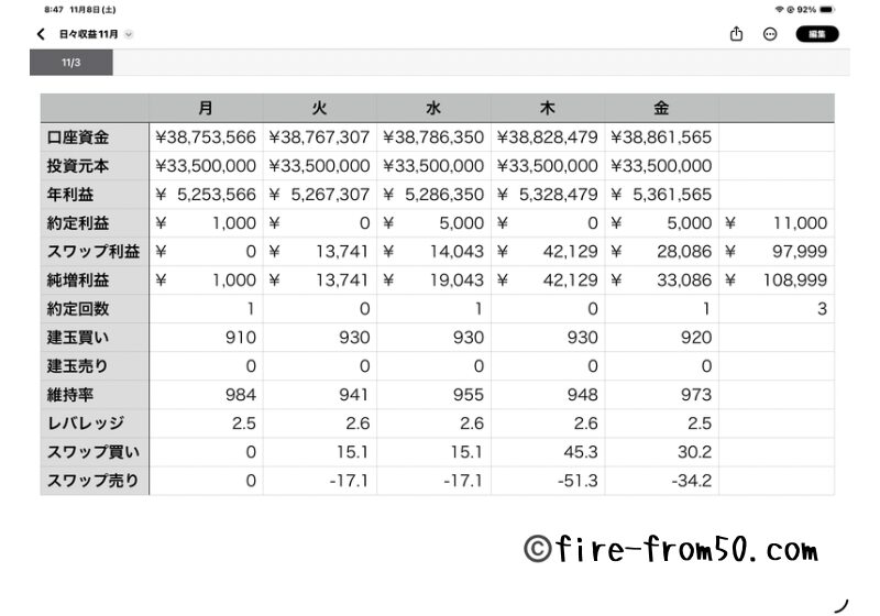 来週分のスワップ先取り及び約定決済で修理液10万円を確保。