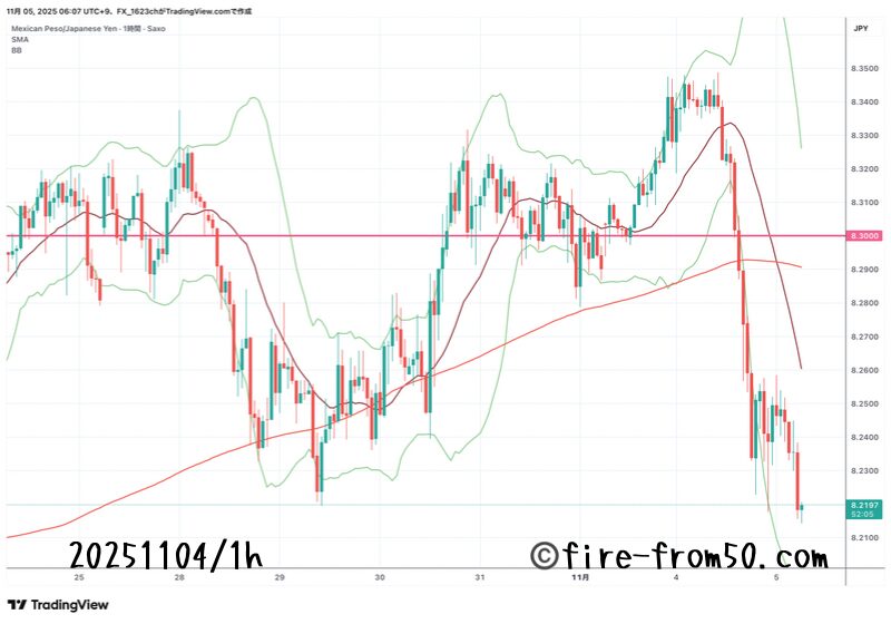 先週安値の8.200ライン付近まで大きく下落。