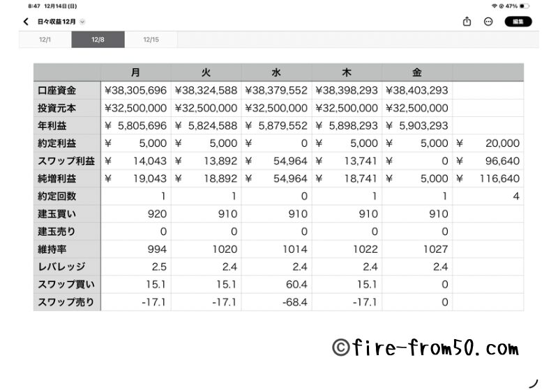 これにより週利益は10万円を確保。