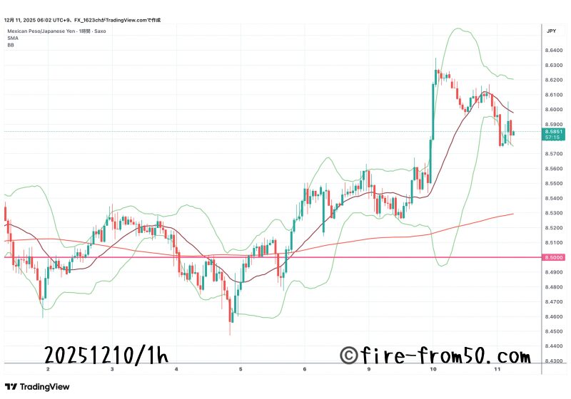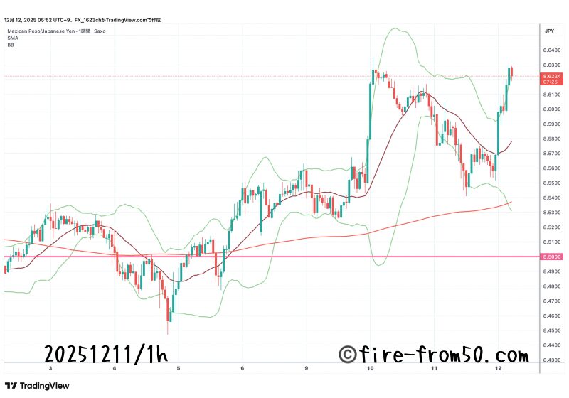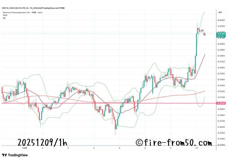 これに伴いメキシコペソ円も大きく上昇して8.600ラインに到達。